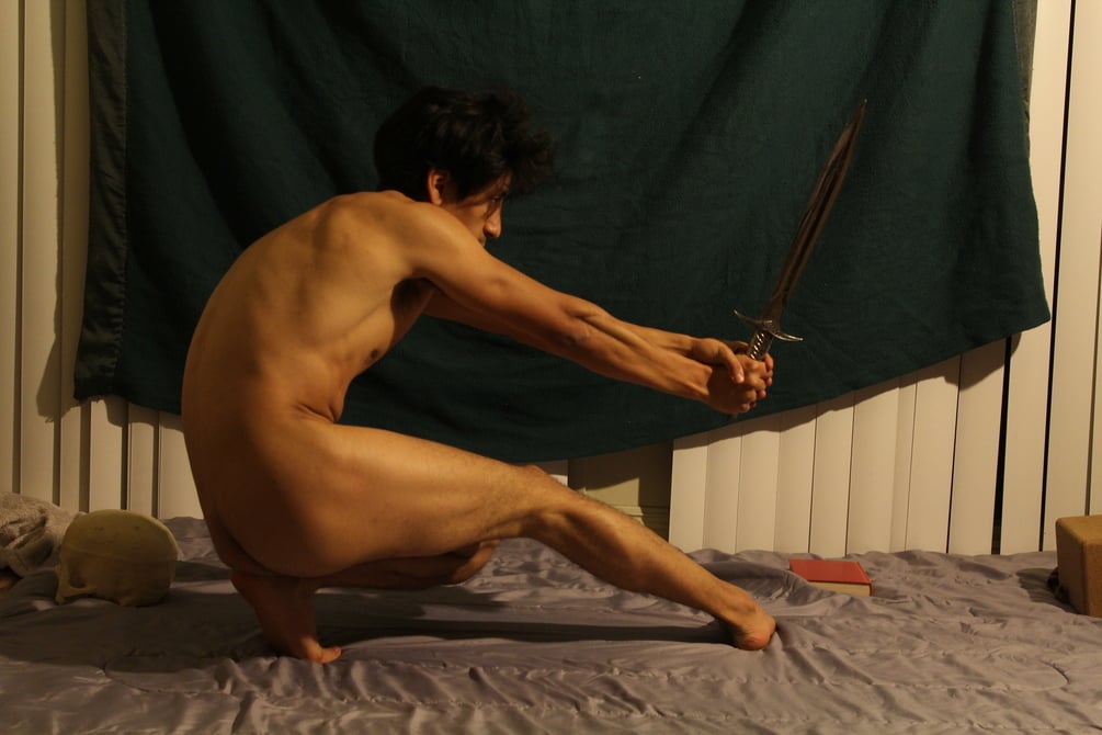 50 photos spot-lit high res quality. Variety of dynamic gesture poses and props. Mostly seated and reclining poses with some standing and gesture poses.